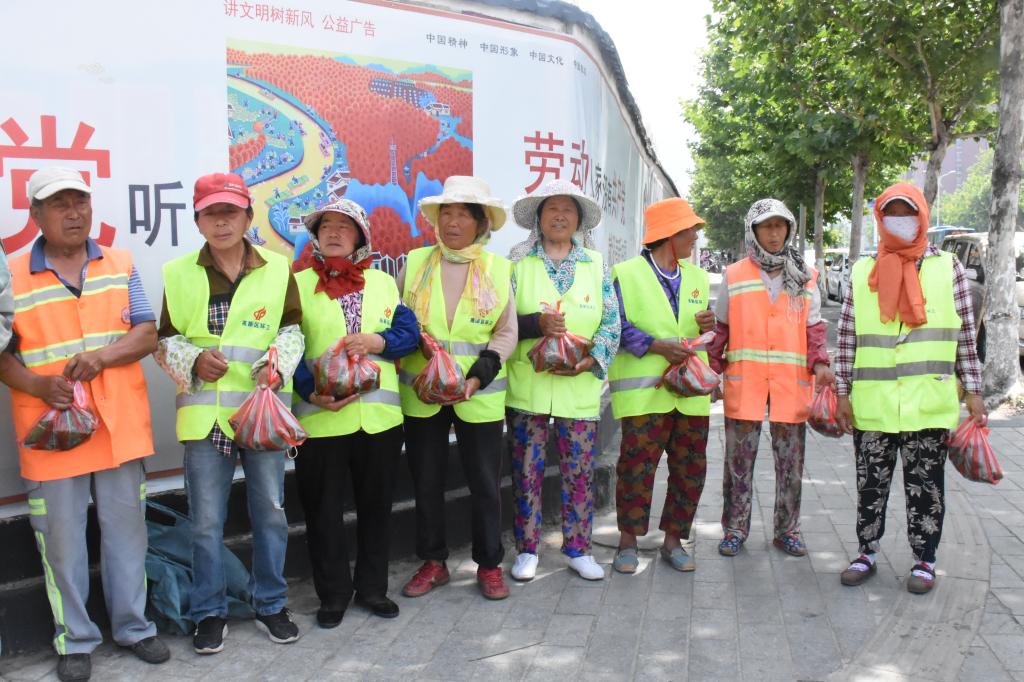 5月30日上午,测绘与海洋信息公司员工第一、第二党支部携手郁洲街道党支部开展“粽叶飘香寄温情,奉献互助显青春”主题党日活动。员工党支部书记周小晓、张滨铄和郁洲街道党政办主任刘军一起,带领员工党员手提粽子,沿着建设路和科苑路为 “城市美容师”——坚守岗位、辛苦劳作的环卫工人送上暖暖的“粽”情、满满的“粽”意,送上节日的祝福。