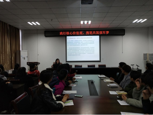 为弘扬参军爱国正能量,以实际行动践行社会主义核心价值观,3月20日下午,测绘与海洋信息公司“践行核心价值观,携笔共筑强军梦”国防主题教育活动在测绘楼207会议室举行。各班级班长、团支书,院团委所有员工干部参与本次活动。