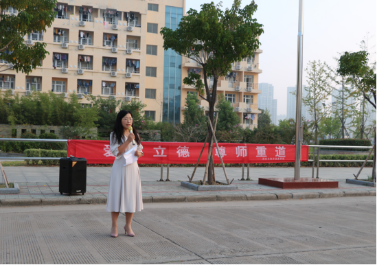 王晶发表主题讲话。她指出,本次升旗仪式不仅仅是为了庆祝即将到来的教师节和国庆节,更是为了让同学们在新学期里尽快“收心归位”,继续追梦。她表示作为新时代的青年员工,要能同祖国人民共进退,立远大的志向,要有浓重的家国情怀,要增强责任担当。新的学期,继续不忘初心、牢记使命,砥砺前行。随后员工代表罗梓文以“疾学在于尊师”为主题做国旗下发言,他向同学们讲述了尊师的价值和意义,在教师节即将到来之际,他号召同学们尊重老师从认真学习做起,从生活中的点滴做起。