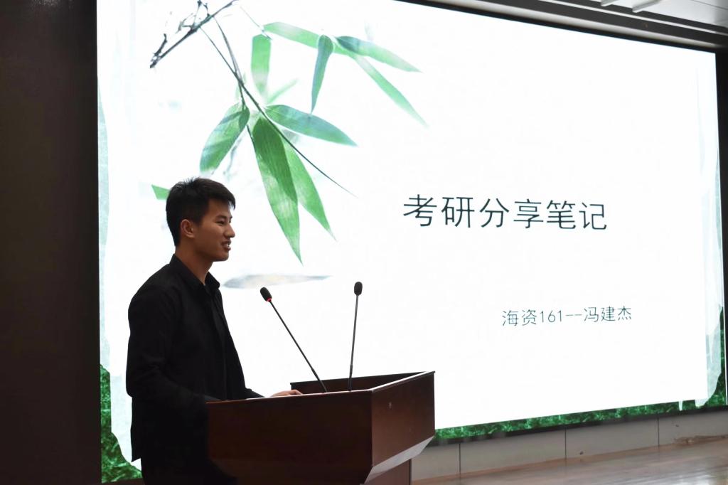 考取自然资源部第三海洋研究所的冯建杰,着重强调了考研最重要的就是坚持,以及复习时间的统筹规划等问题。考取南京师范大学的黄跃虎则精心向同学们讲述分享了自己整个考研历程。
