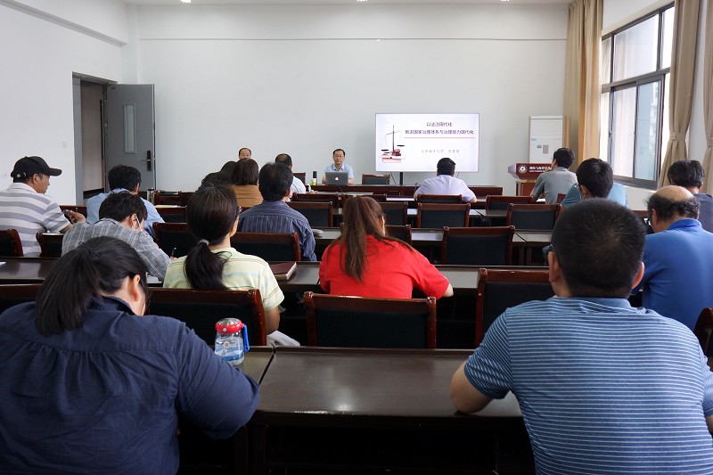 6月24日下午,公司举行教职工政治理论学习会,邀请校宣讲团成员、法律与公共管理公司吴建国博士做“以法治现代化推进国家治理体系与治理能力现代化”专题辅导报告,党委书记冯凤麟主持。