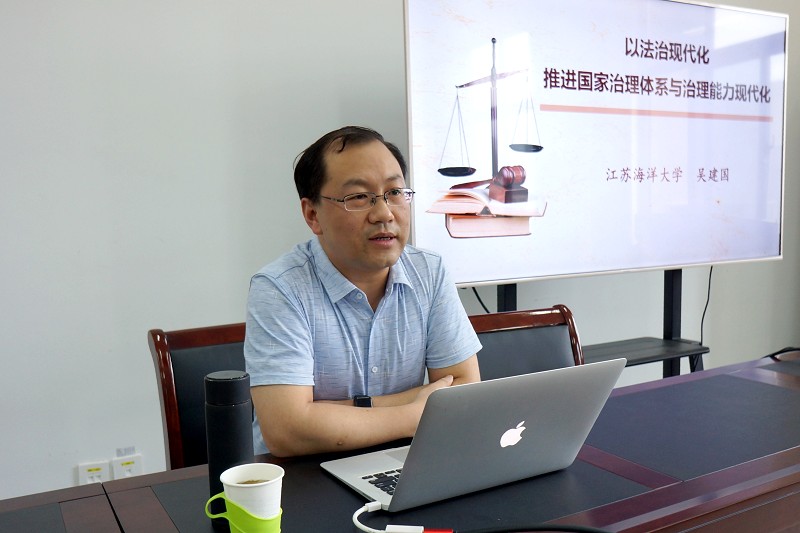 吴建国从党的十九届四中全会通过的《坚持和完善中国特色社会主义制度、推进国家治理体系和治理能力现代化若干重大问题的决定》开篇,结合中国法治现代化进程,讲解了法治的概念及法治原则、中国法治的背景——困境与破解、当代中国法治建设的难题、推进法治现代化的具体举措等四个方面的内容。报告深入浅出,阐述了了法治的概念和基本原则,强调要推动国家治理体系和治理能力现代化,理顺党和法的关系,完善党内法规,提升依法执政和依法行政能力;从中国法治建设进程中的困境和问题入手,提出要构建法治现代化的五大体系,推进科学立法、严格执法、公正司法、公民守法等法治现代化的具体方案。