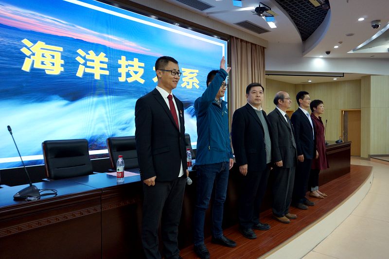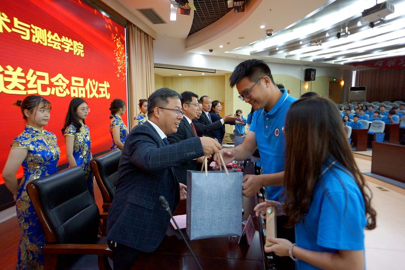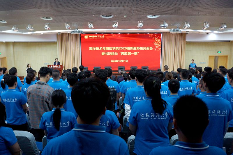 海洋技术、测绘工程和地理信息三个系以及党政办、教学科研办、学工办的老师集体亮相,用简洁生动的语言介绍部门、祝福新生、勉励学子,拉近了师生距离,增进了彼此了解。随后,全体新生分班级集体起立行拜师礼,致谢公司,感谢老师,用整齐划一、铿锵有力的誓言,决心学好专业,拓展素质,回报父母、回报社会。
