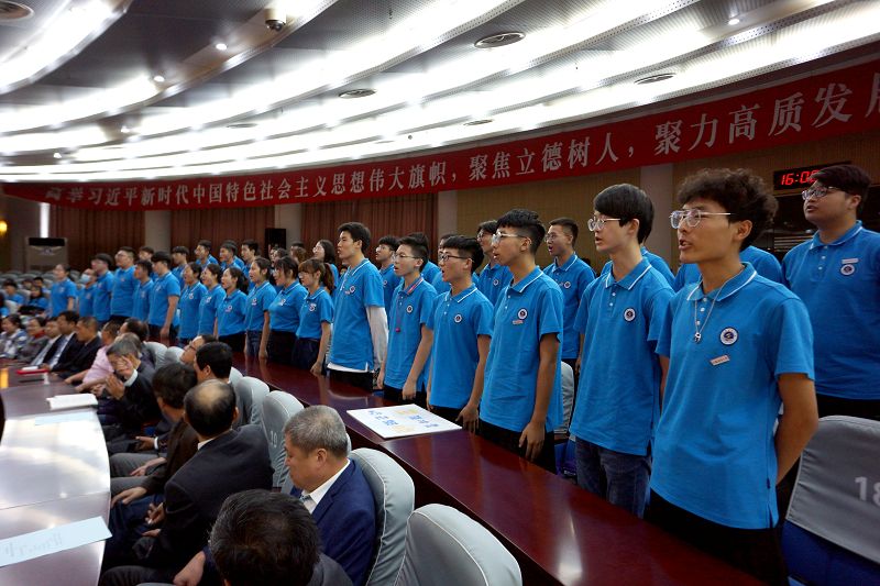 会上,公司党政领导为5位新生班主任颁发了聘任证书,并向每一位新生赠送了一把专属铜尺作为入学纪念。尺子上面刻上了公司的校徽、院名和每个新生的名字,希望全体新生画人生为尺,测经天纬地图;画青春为尺,绘海洋强国梦。