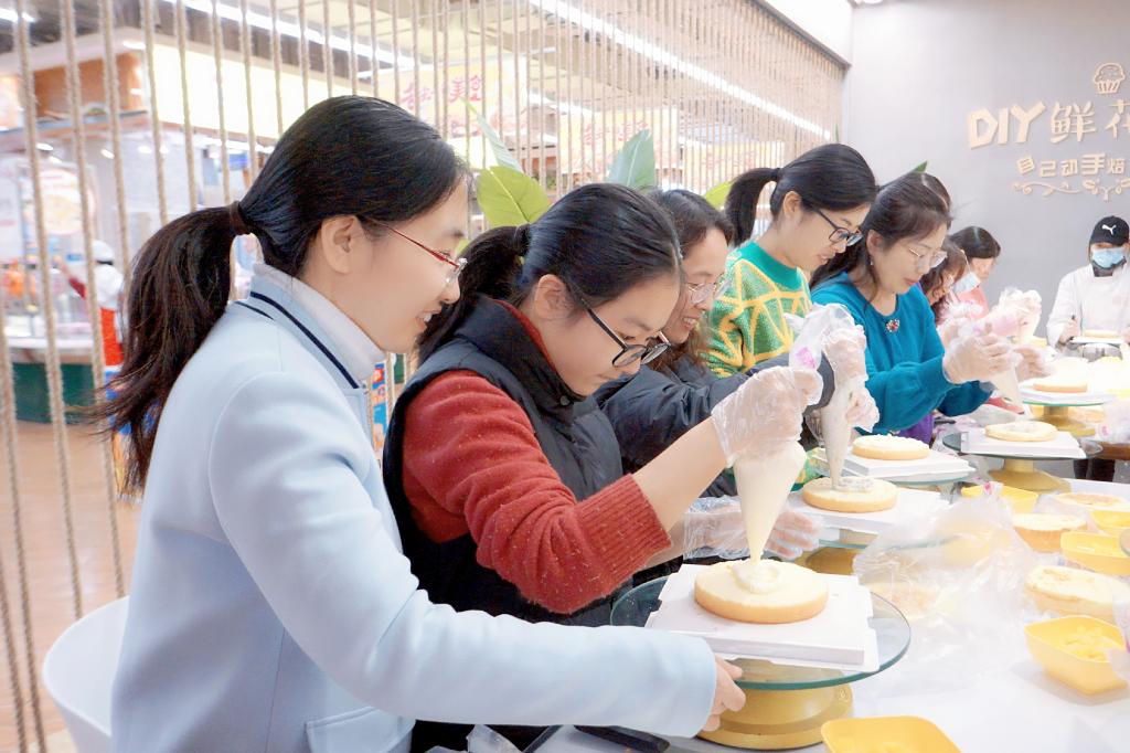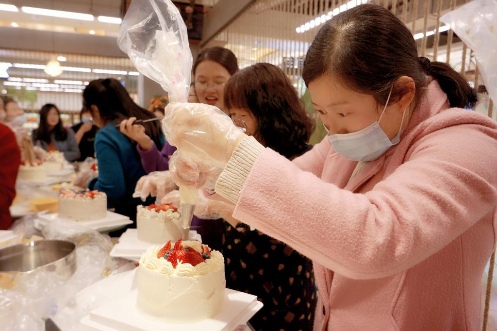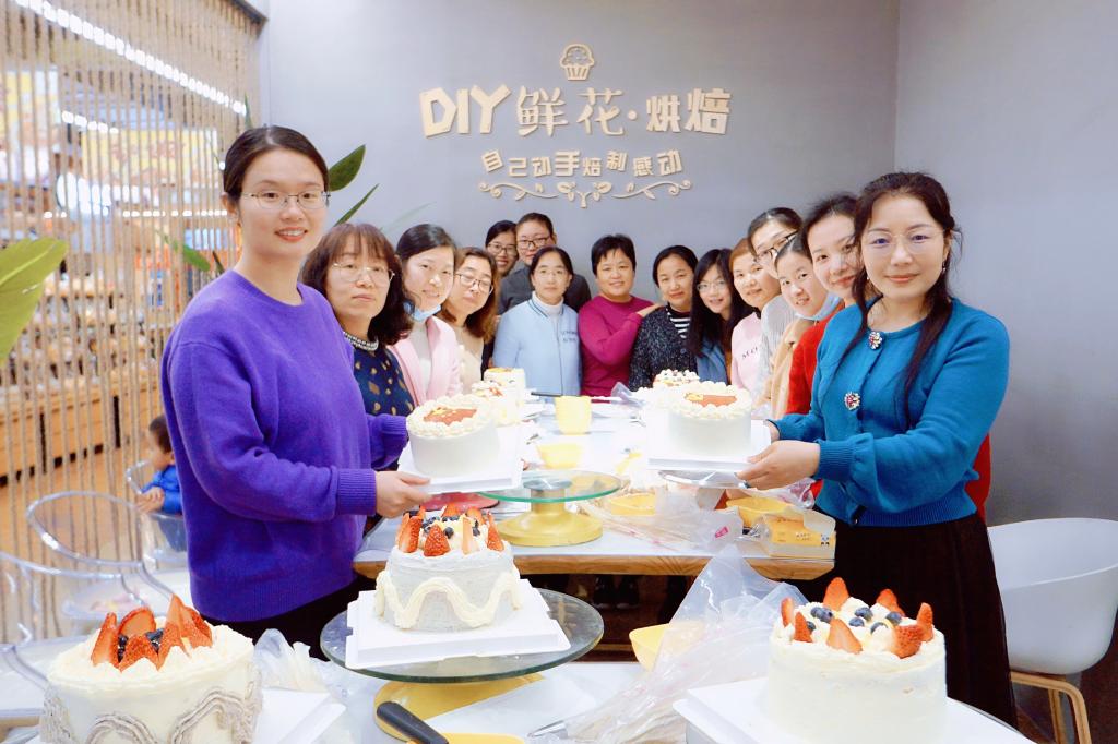 3月7日下午,公司工会组织女教工开展了“暖心烘焙甜蜜生活,巾帼礼赞建党百年”主题活动.全院女教工欢聚利群超市田之禾烘焙店,亲手制作蛋糕,共同欢庆第111个国际妇女节。
