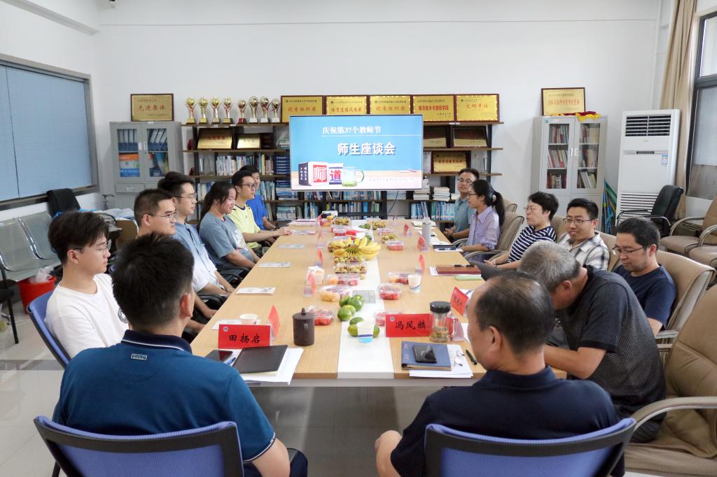 师生座谈会上,师生代表欢快畅谈,其乐融融。与会老师围绕“庚续百年初心,担当育人使命”教师节主题分享了自己的从教心得,员工结合自己的学习成长经历回忆起曾经遇到的好老师,感恩老师的亲切关怀和无私奉献。党委书记冯凤麟参加,和师生们分享了学习“习近平9月8日给全国高校黄大年式教师团队代表回信”的体会,并听取了师生们的心声。