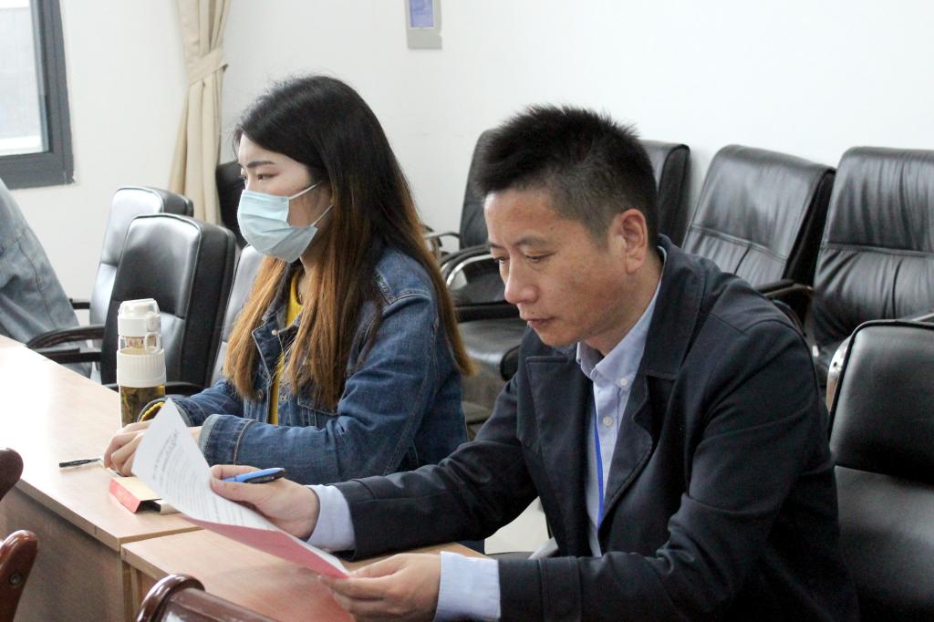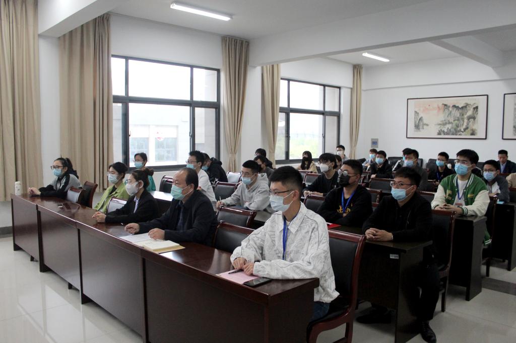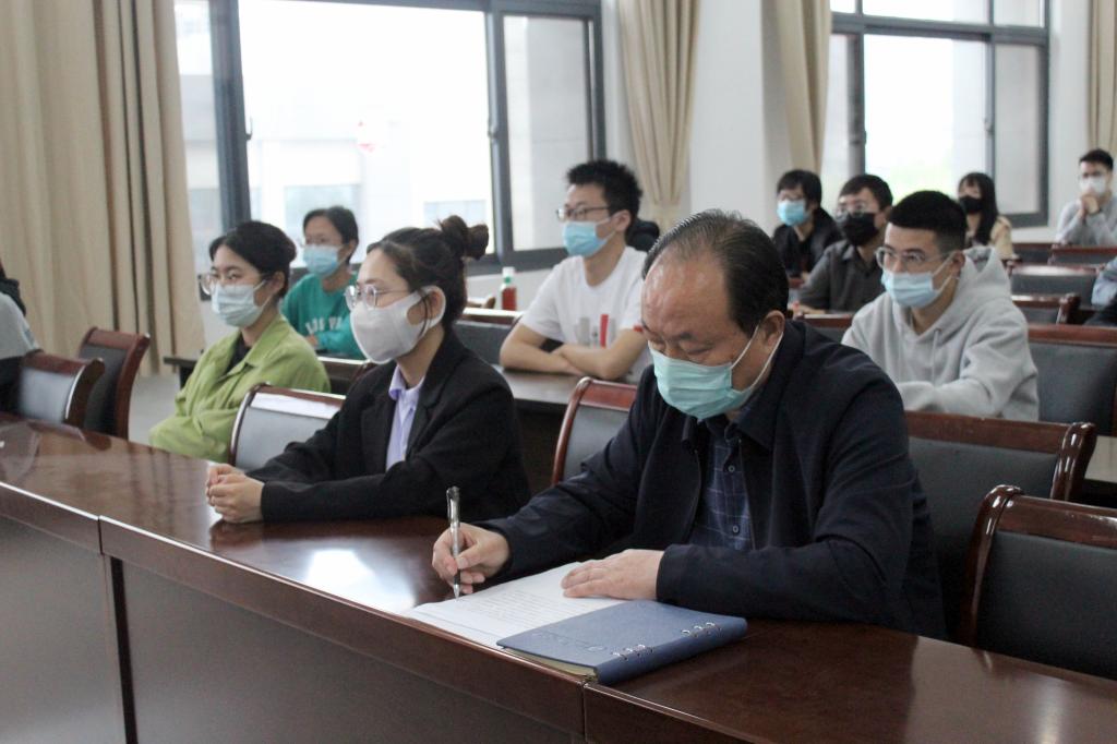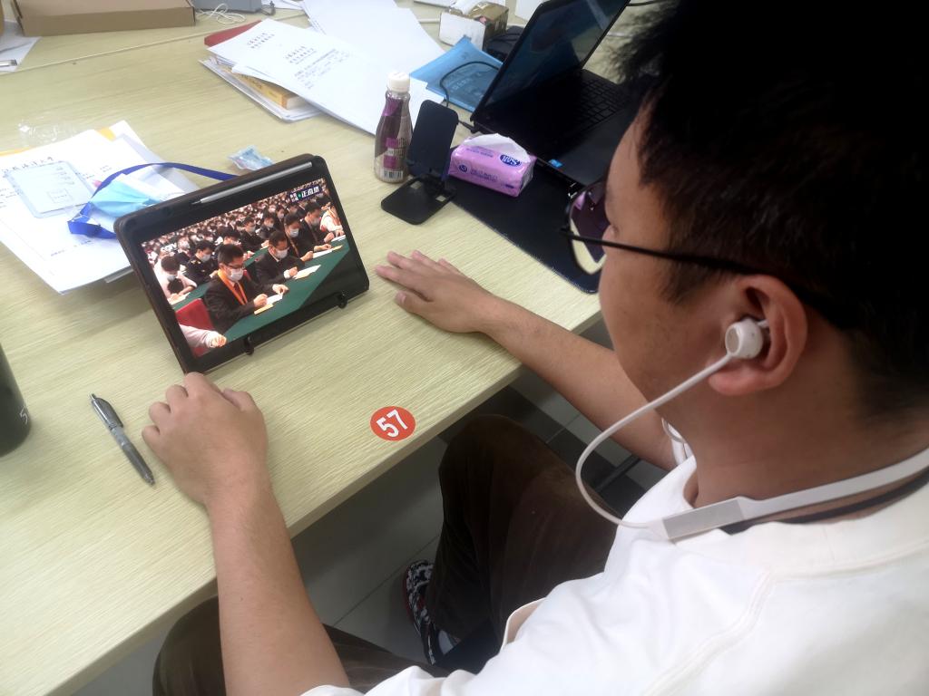 测绘楼302会议室观看认真观看直播的院领导和员工代表