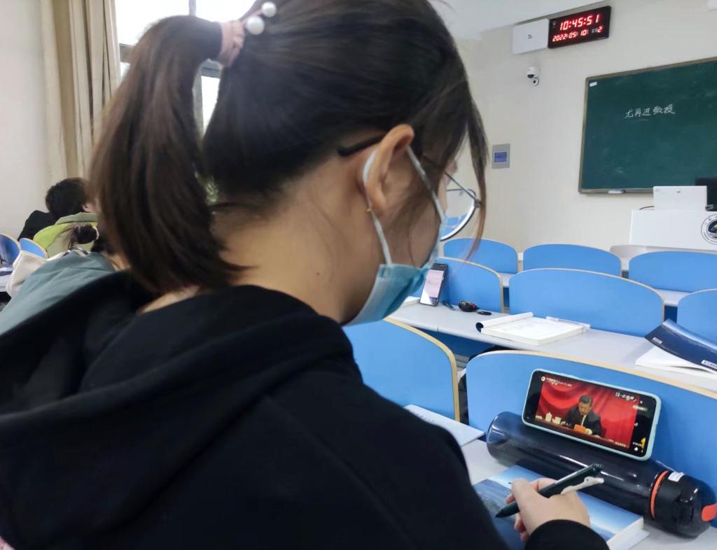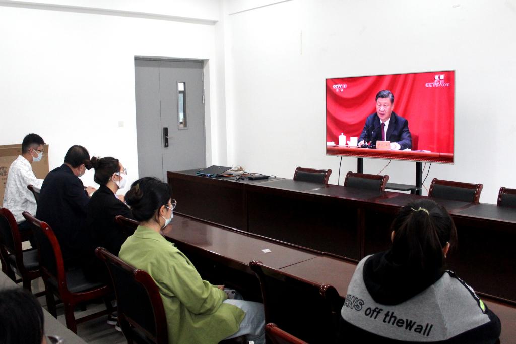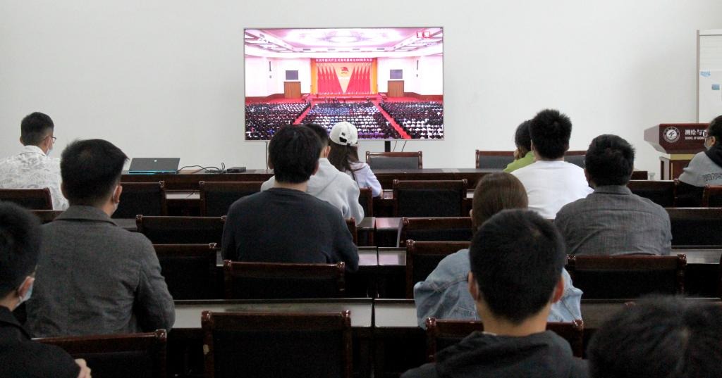 部分团员青年在测绘楼302会议室集中收看大会直播