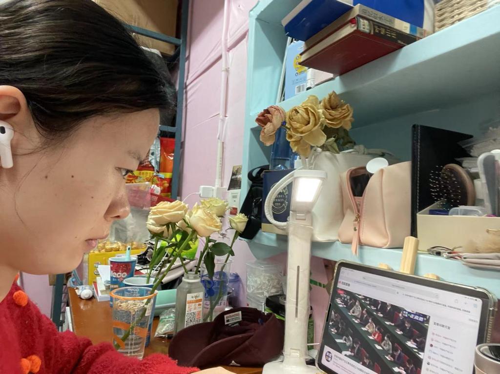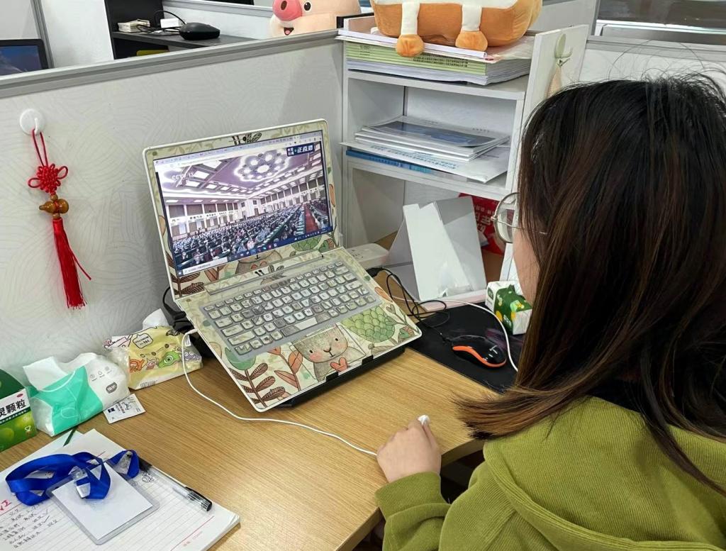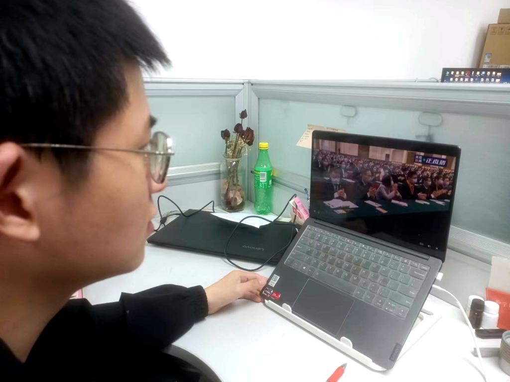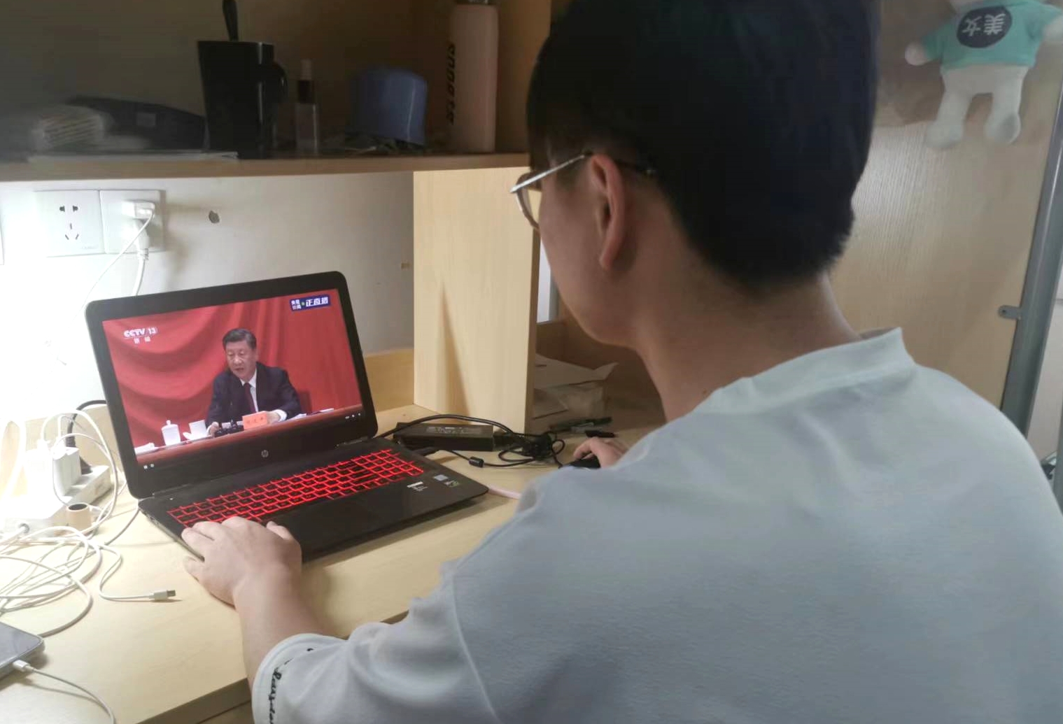 在会议室、研究室、教室、宿舍认真收看直播的团员青年(部分)