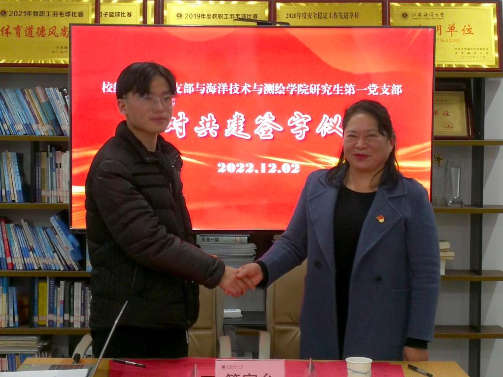 仪式开始,校纪委审查调查处处长、纪委机关党支部书记缪克平和公司研究生第一党支部委员侯健康分别介绍了支部党建工作概况以及结对共建后的工作打算,并与研究生第一党支部副书记陈文广代表双方签订了党支部结对共建协议。
