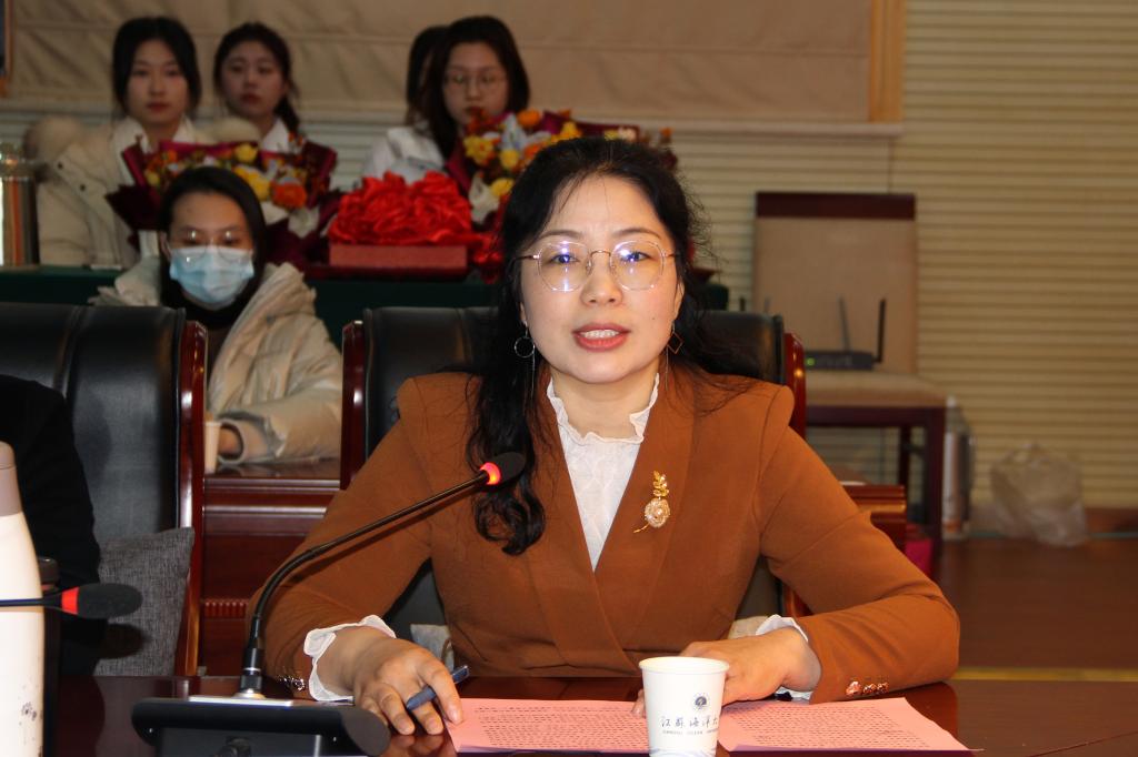 王晶代表全院师生满含深情地致辞。她首先简要介绍了两位教授的从教经历,分享了他们在教书育人、科学研究和管理服务中所做出的突出贡献,并代表全院师生向两位教授表达了最诚挚的感谢和祝福。她表示:两位老教授30多年来始终坚守三尺讲台,勤耕不辍。从青春正好到两鬓霜华,他们把最美好的年华奉献给了所热爱的教育事业,把所有的心血倾注给了员工,用优良的师德引领着一批又一批年轻教师。他们既是大家的同事,又是前辈,既是良师益友,更是公司继续前行的领路人。他们师德高尚,爱岗敬业,辛勤耕耘,是公司赓续发展的宝贵财富。从两位前辈手里接过接力棒,全院师生一定要加倍努力,聚力奋发,勇毅前行,让公司发展得越来越好。