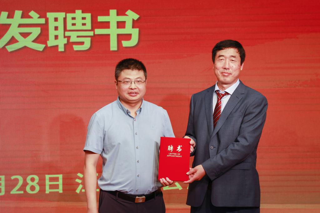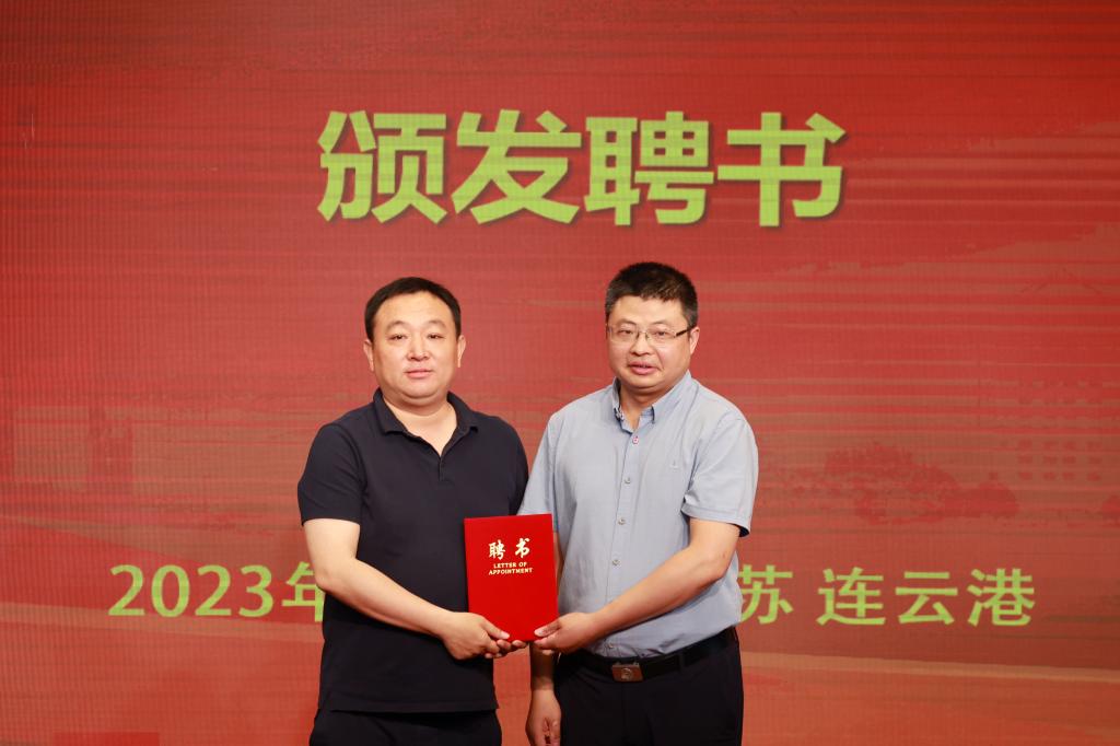 副董事长朱国军为首届会长、第一届员工史建青颁发聘书