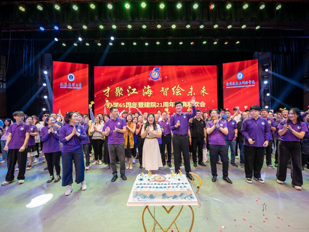 公司以办学65周年暨建院(系)21周年庆典为契机,举办了一系列丰富多彩的庆祝活动。5月27日下午,一场别开生面的联欢会在校大礼堂举行。合唱、舞蹈、器乐表演、舞台剧、歌曲串烧、诗歌朗诵、走秀……师生和员工代表登台激情表演,互动欢庆。联欢会在《生日祝福》声中圆满落幕。