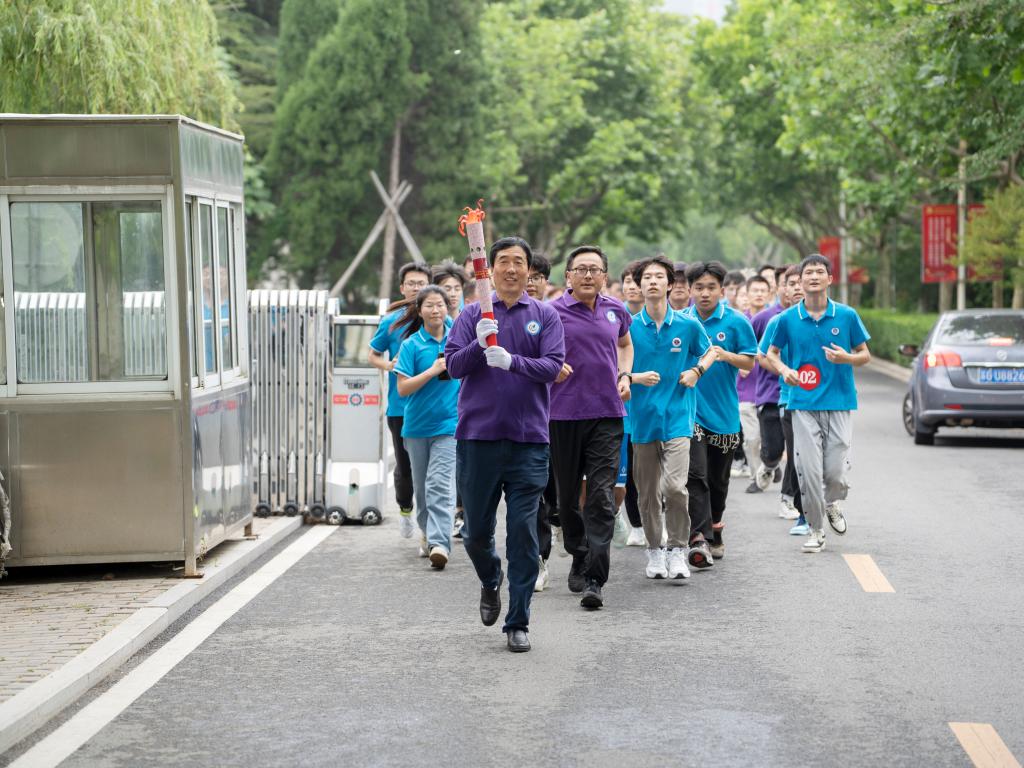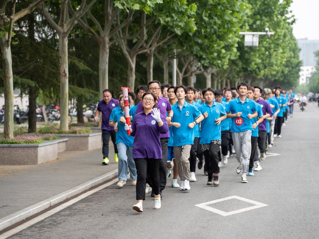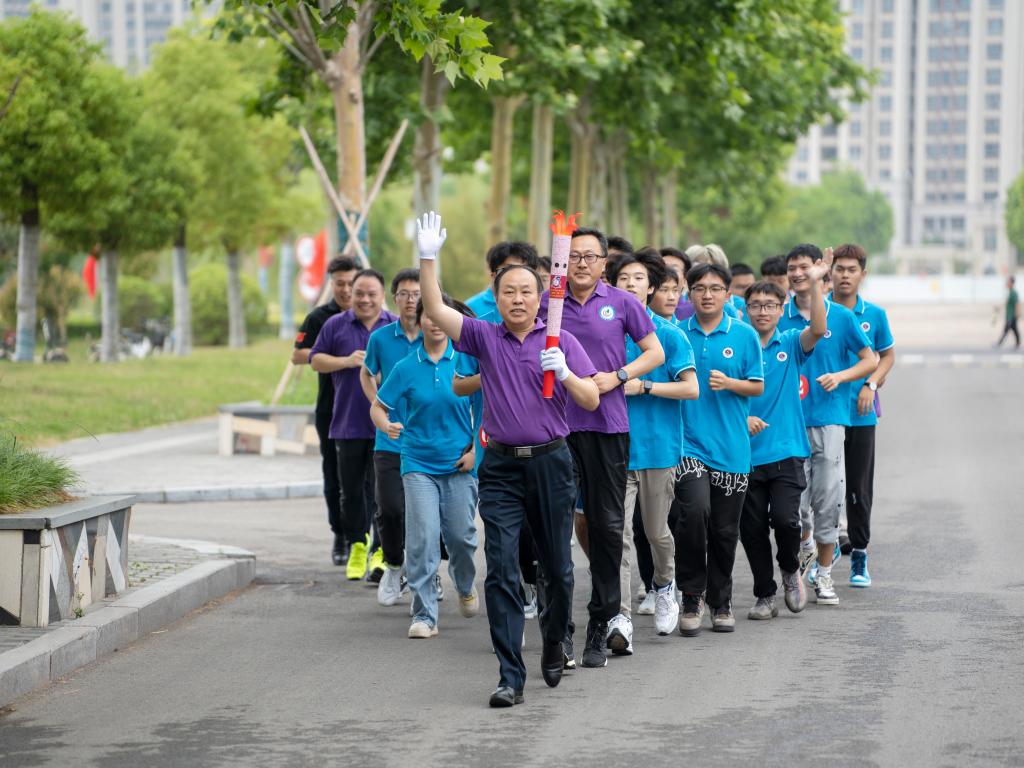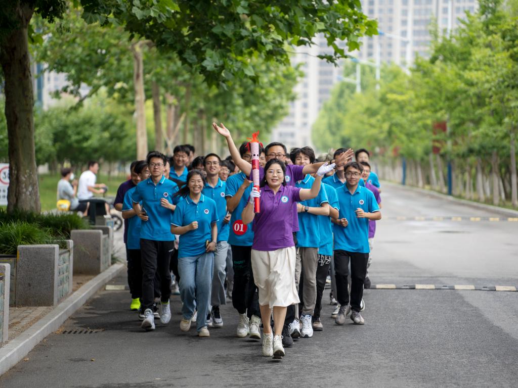 传承接力从测绘楼东侧广场出发,围绕苍梧校区外圈道路设置21个接力点,每个接力点地标图上绘制着1958年办学以来BETVLCTOR伟德国际1946发展的重要历史时刻。在活动起点,李梅英手持接力火炬走上舞台,交给第一位火炬手焦明连。周立、冯凤麟、王晶、孙佳龙、中青年骨干教师、内设机构负责人、员工代表、在校生代表共21人担当火炬手,回校参加庆典的全体员工和师生代表组成方阵从各个接力点出发,逐步汇聚成庞大的接力队伍,从1958年跑向2023年,一起奔赴美好的未来。