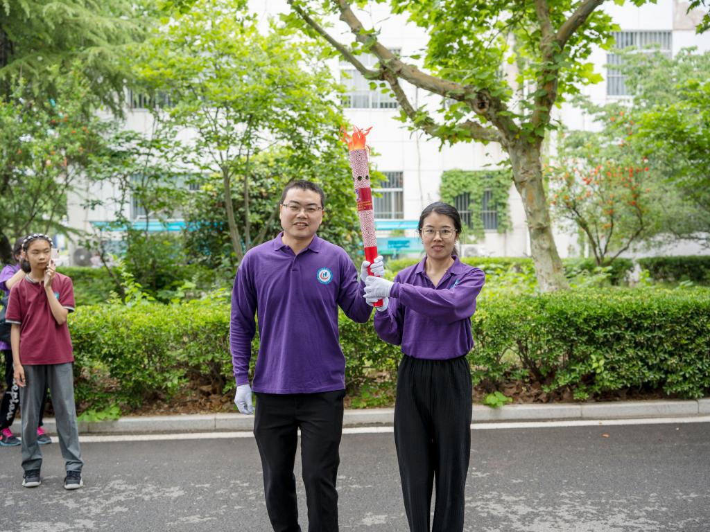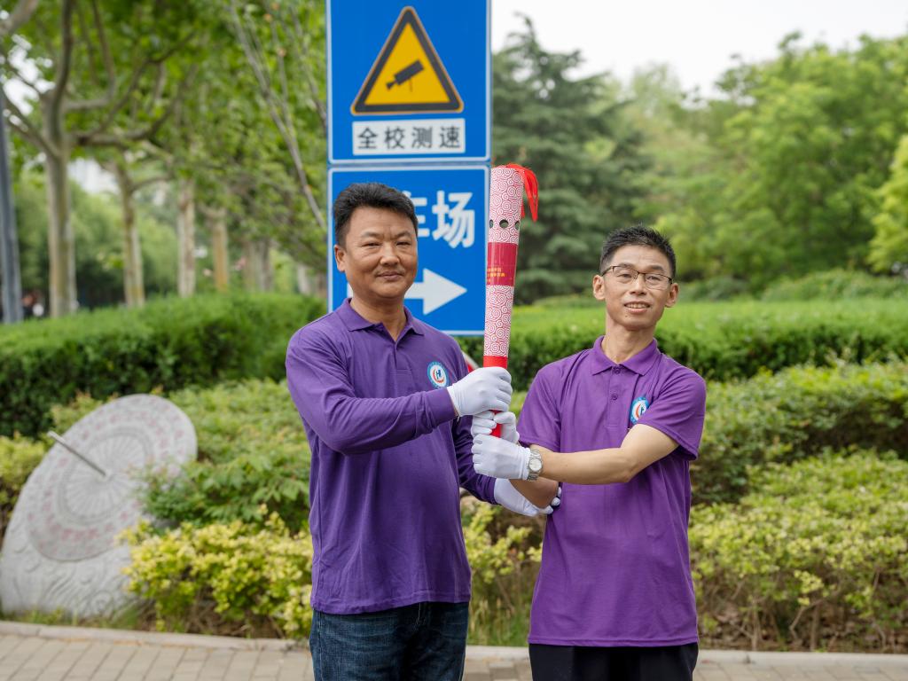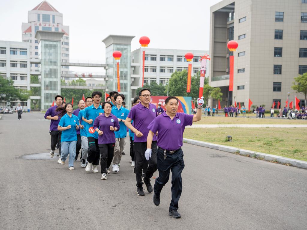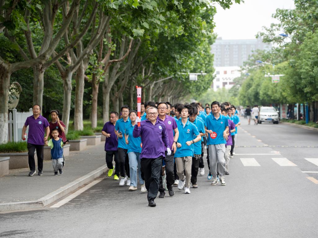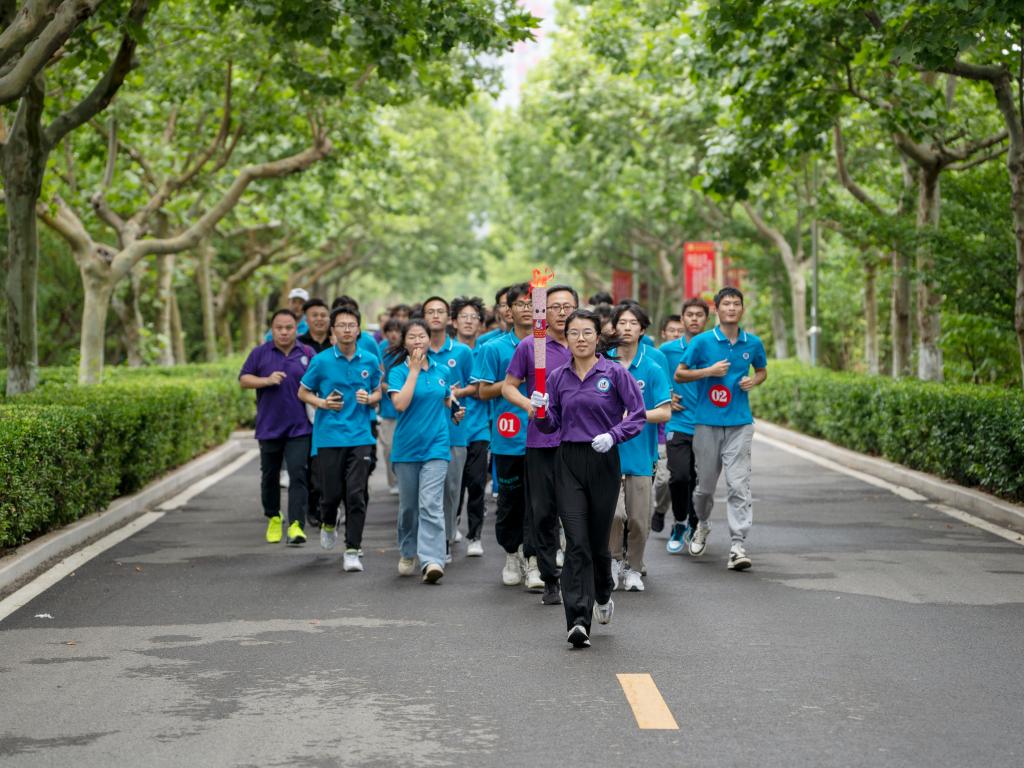 传承接力从测绘楼东侧广场出发,围绕苍梧校区外圈道路设置21个接力点,每个接力点地标图上绘制着1958年办学以来BETVLCTOR伟德国际1946发展的重要历史时刻。在活动起点,李梅英手持接力火炬走上舞台,交给第一位火炬手焦明连。周立、冯凤麟、王晶、孙佳龙、中青年骨干教师、内设机构负责人、员工代表、在校生代表共21人担当火炬手,回校参加庆典的全体员工和师生代表组成方阵从各个接力点出发,逐步汇聚成庞大的接力队伍,从1958年跑向2023年,一起奔赴美好的未来。