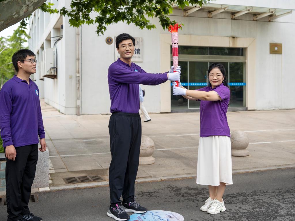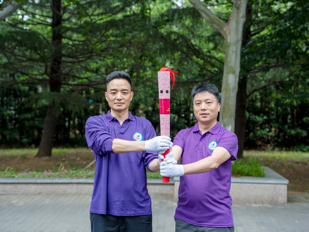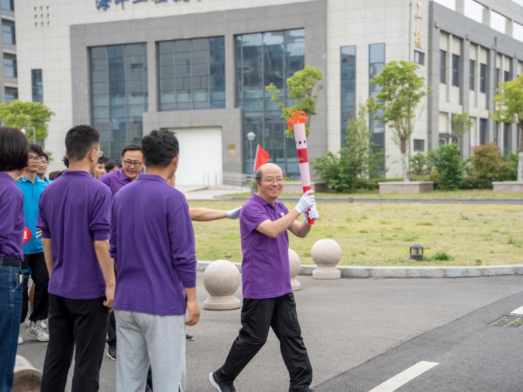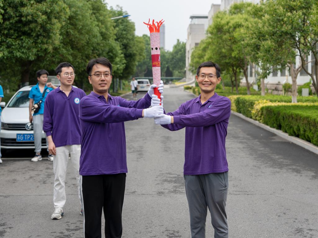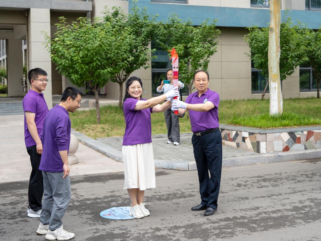 公司党委副书记李梅英和焦明连教授交接第一棒火炬