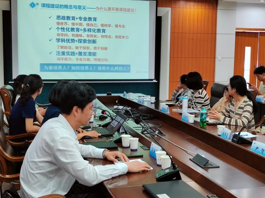 示范课后,陈博士的导师江教授做了题为“突出课程特色,建设精品课程”的报告。报告结合该校国家级一流课程建设经验,分享了课程建设的意义、理念和思路、内容与方法以及体会和思考,解答了老师们在课程建设中困惑和难点问题。