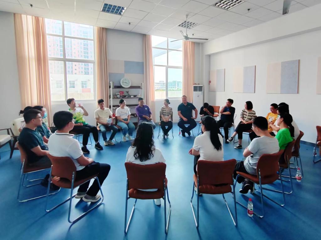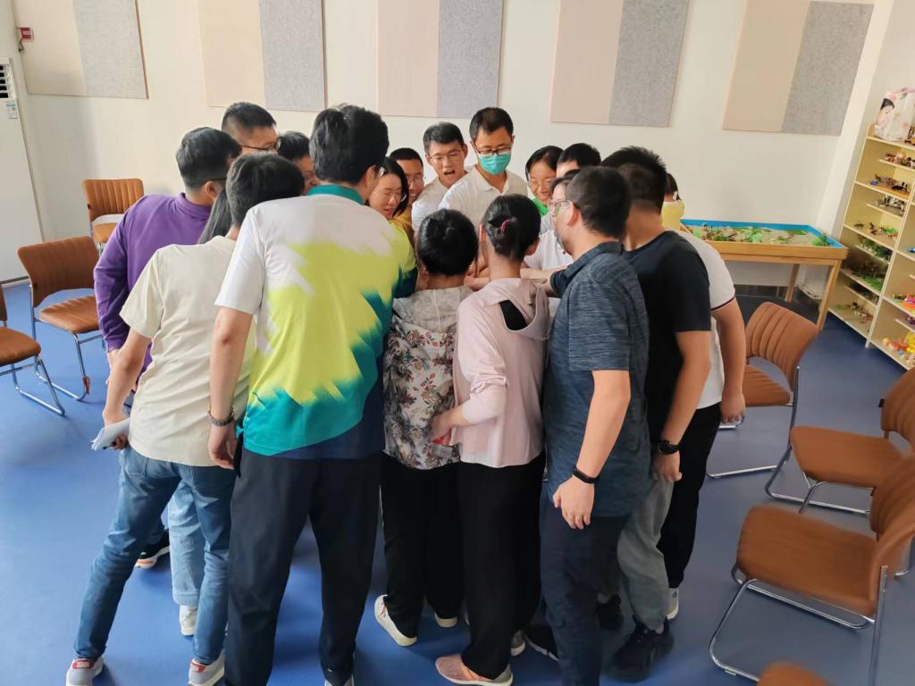 8月30日下午,在筑海楼310活动室开展了“我能为公司做什么贡献?”素质拓展主题活动,校员工处副处长张岳担任策划和主持。所有老师被均分成2个团队,协作完成了“破冰之旅”“轻飞绳舞”“交通堵塞”3个团建项目,公司党委书记王晶、经理孙佳龙、副经理吕海滨全程参与活动,与大家一起体验和分享。活动中,大家发扬团队协作精神,交流互信,凝聚共识,共同解决困难和问题。