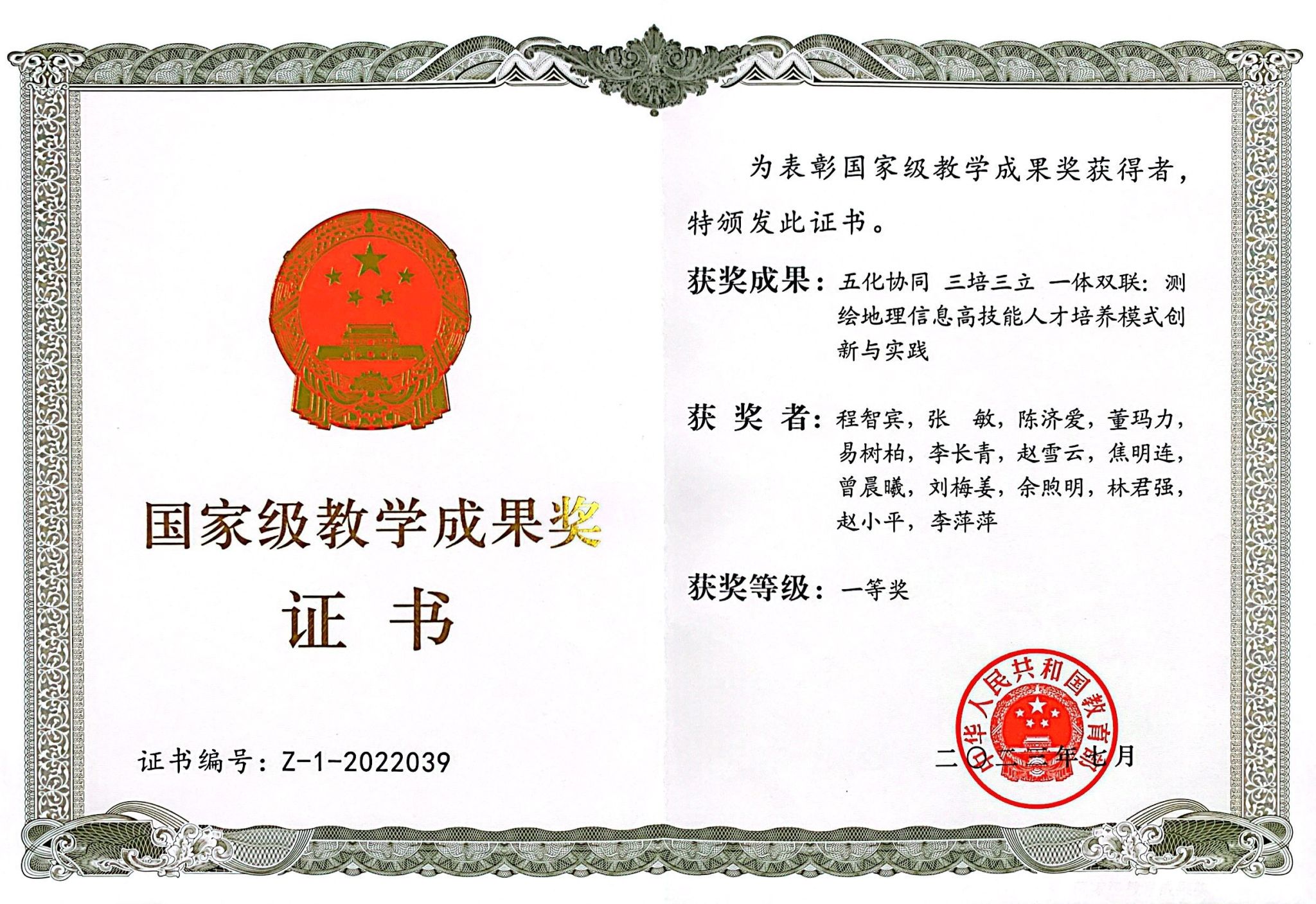 今年7月,教育部发布了2022年国家级教学成果奖获奖项目名单,近日颁发了奖牌和证书。公司焦明连教授参与完成的《五化协同三培三立 一体双联:测绘地理信息高技能人才培养模式创新与实践》荣获2022年国家级教学成果奖一等奖。这是我国测绘地理信息领域首次获此殊荣,也是公司在国家级教学成果奖项上的又一次重大突破。