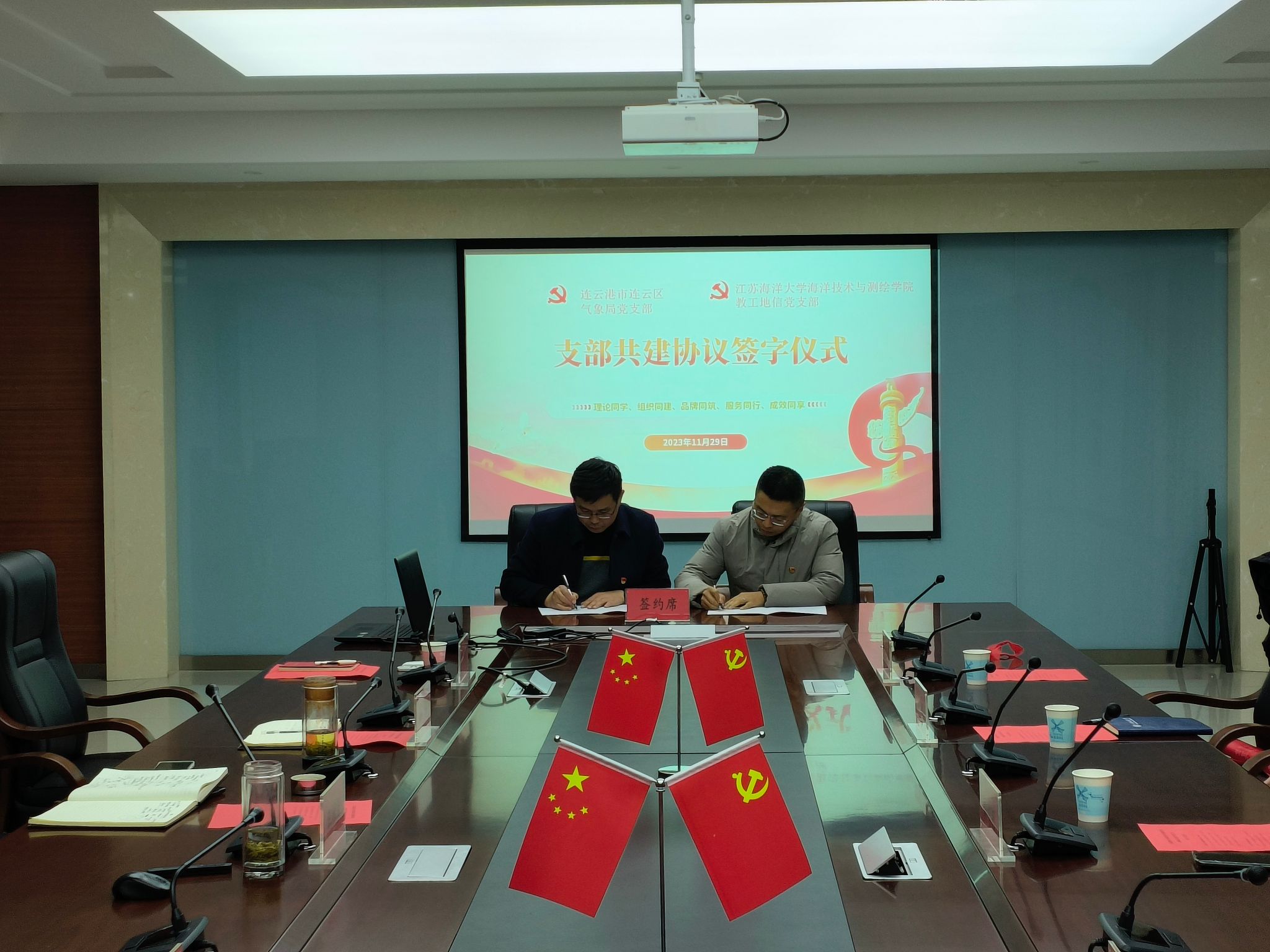 为深入贯彻落实党中央、国务院关于发展海洋经济、建设海洋强国的战略部署,认真落实省委省政府相关工作要求,加快推进现代化新港城建设,助力全市海洋经济高质量发展,11月29日,地理信息系教工党支部和连云区气象局党支部共建仪式在连云区气象局会议室隆重举行。连云区气象局党组书记、局长王桂臣、纪检组长苏伟、副局长刘瑞翔以及公司副经理成印河、地理信息系教工党支部书记邱志伟出席,连云区气象局全体党总支委员和2个共建党支部的全体党员参加共建仪式。
