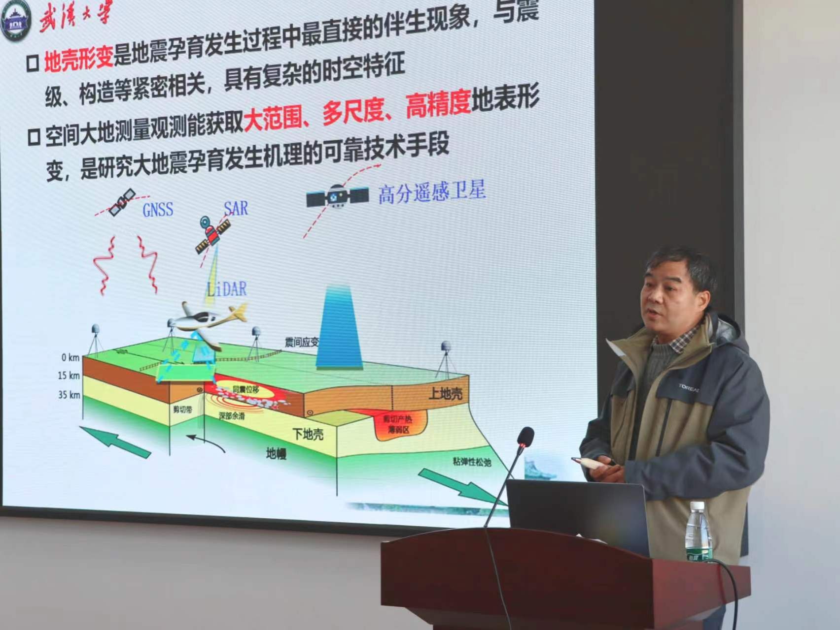 许才军报告的主题是“综合利用空间大地测量观测技术研究地震与地壳形变”。报告从最近的甘肃地震以及唐山地震、汶川地震等重大自然灾害入手,分析了空间大地测量观测技术在地震监测和救灾服务中的应用。他指出要建设地震地壳形变的空间监测构造环境监测网络,用多种数据联合反演地震参数与破裂过程,全面、完整认识地震机理、地震孕育发生的物理过程,有效监视地震的孕育、发生过程,以便根据孕震过程的发展阶段进行地震预测。