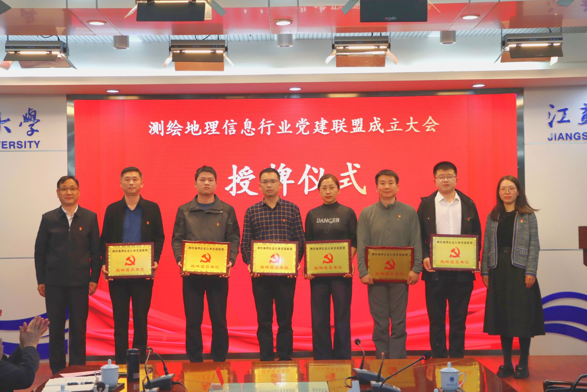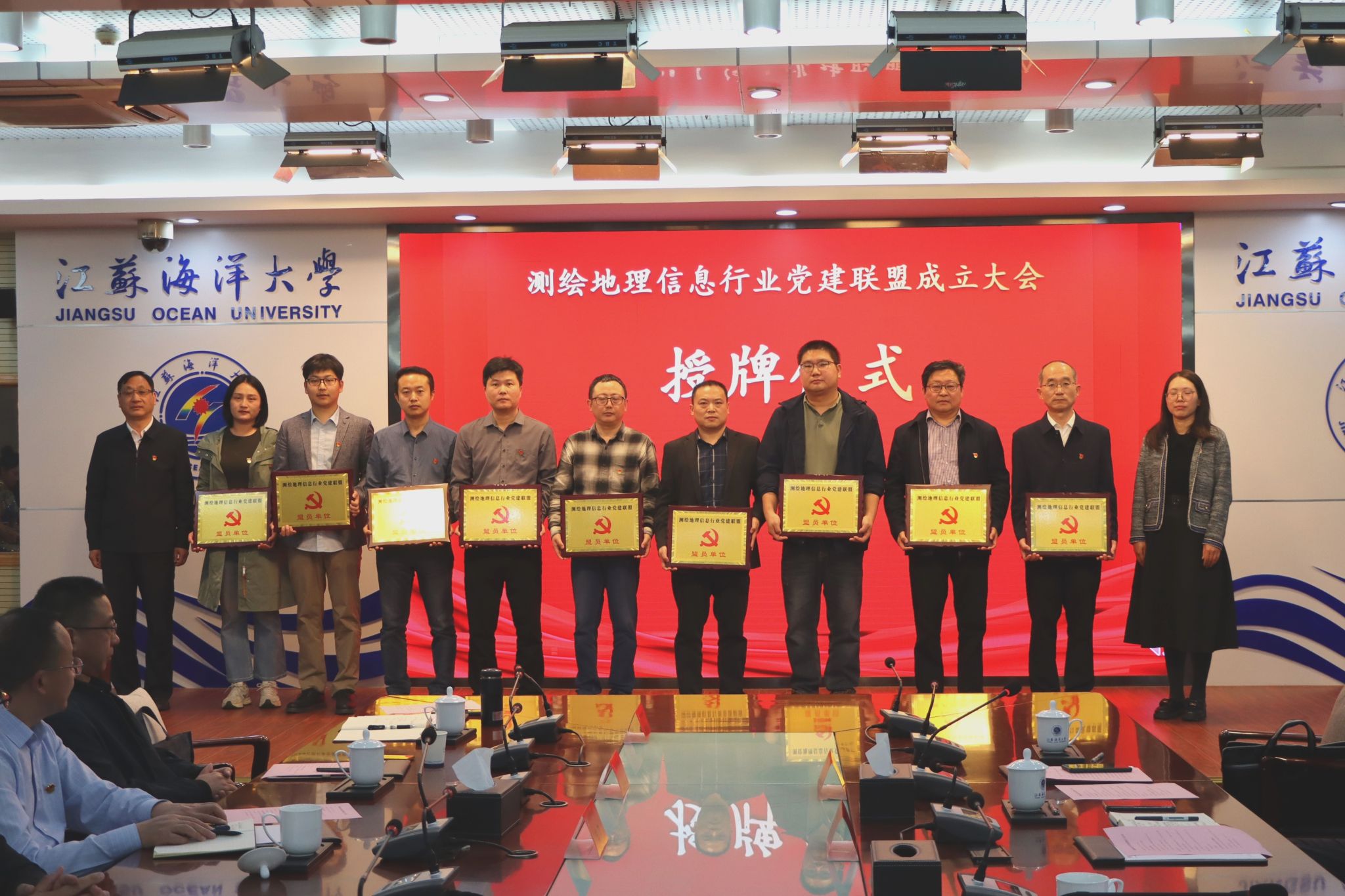 会上举行了测绘地理信息行业党建联盟理事单位授牌仪式。连云港市自然资源和规划局吴铭铭处长和公司党委组织部部长陈书法共同为理事单位授牌。
