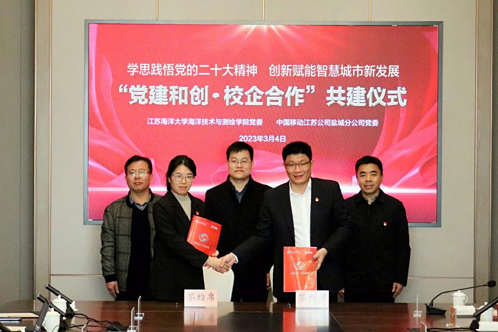 3月4日,公司教工第二党支部与中国移动盐城射阳分公司党支部“党建和创+校企合作”共建仪式在射阳县千鹤湖酒店会议大厅举行。射阳县人民政府副县长、省科技镇长团团长王延杰出席并致辞。中国移动盐城分公司副总经理刘洪、中国移动射阳分公司总经理刘冬冬以及公司副经理成印河、地理信息系主任杨毅、教工第二党支部书记亓晓彤等参加。仪式由中国移动射阳分公司客户部经理赵燕主持。