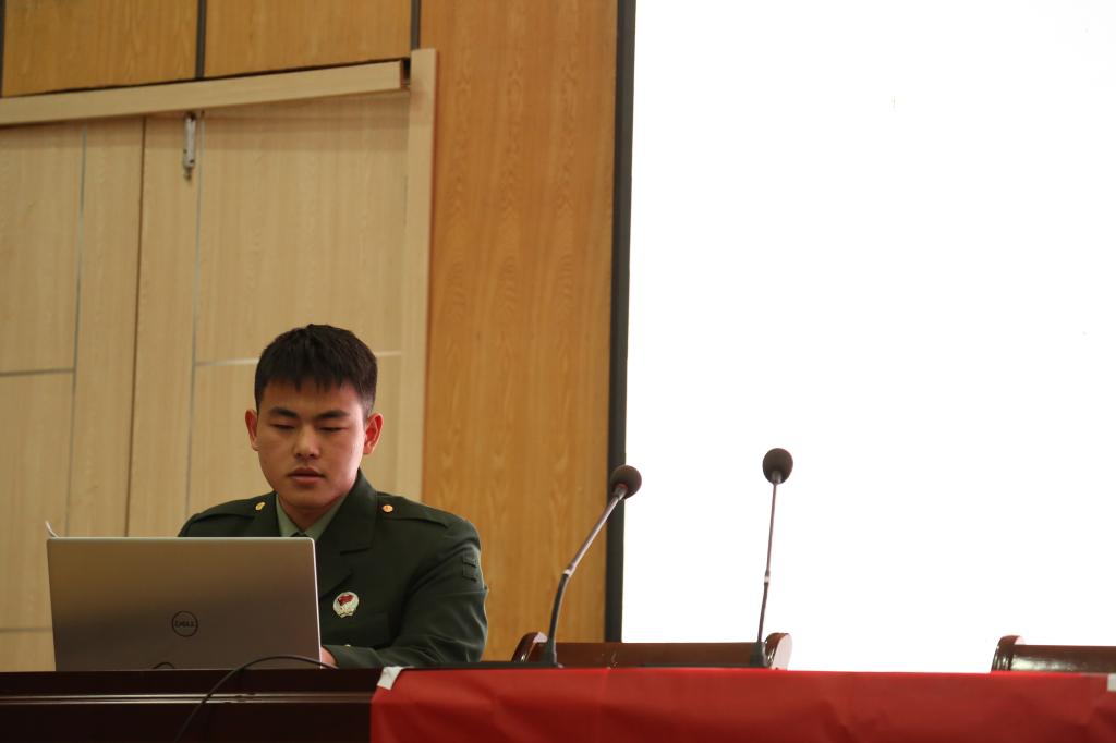退役军人王宇鹏同学向大家分享了自己在部队的成长经历,他说,参军带给自己的是汗水、泥泞和奉献,进入部队接受最严苛的训练,把自己锻造成一把国之利刃。他勉励大家在遇到苦难时不要轻言放弃,以青春建功新时代。退役军人鲍书文同学也讲述了他独特的军旅生涯,他表示光荣在于平淡,艰巨在于漫长,自己绝不后悔将最美好的青春年华献给军营,现在也更加珍惜退伍后的学习机会。他还向同学们介绍了现代军队的改革情况和入伍新政策,鼓励有志青年参军入伍,为中华民族伟大复兴贡献青春力量。