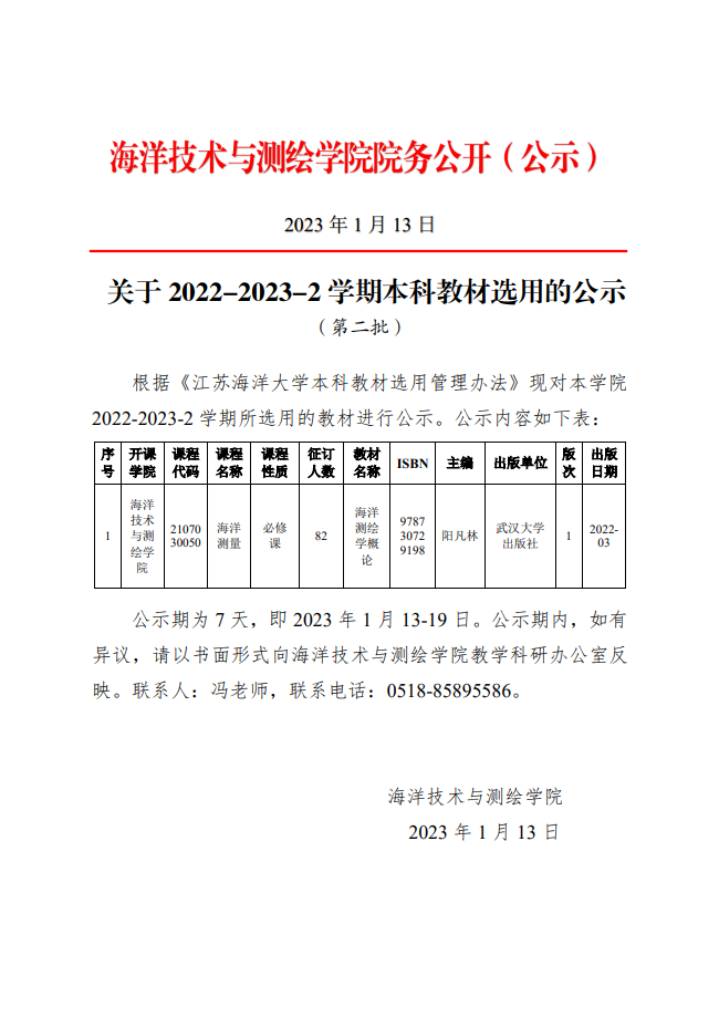 关于2022-2023-2学期本科教材选用(第二批)的公示
